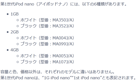 初代iPod nanoの型番は以下でチェックできます。