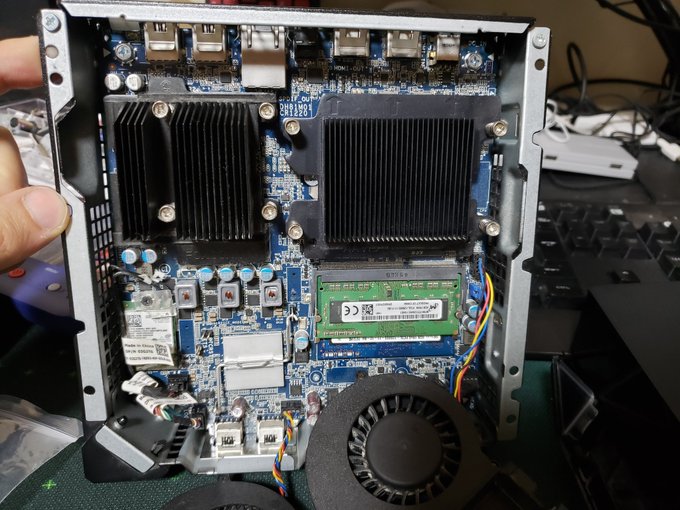 殻割り後に2つのファンを取り外しメモリの右側にある青いジャンパーピンを引き抜く