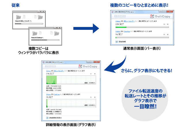 フリーソフトというとややこしい操作を要求されそうな気がしますがこれはインストールするだけで、標準の転送画面が変更されて、転送スピードが上昇します。