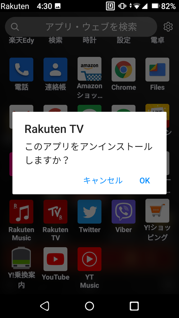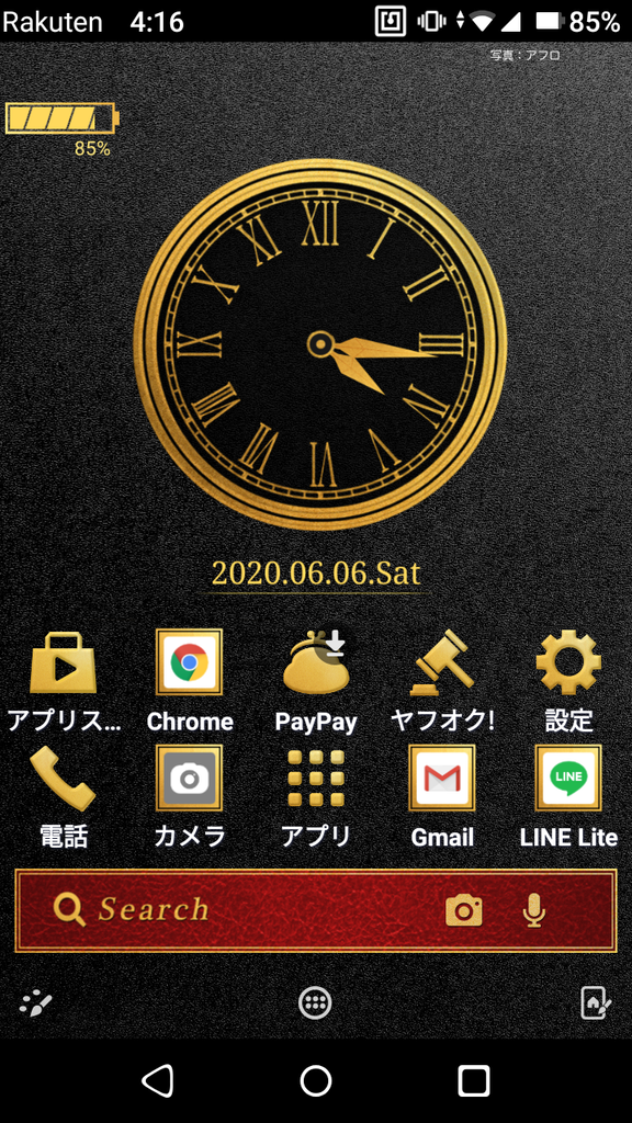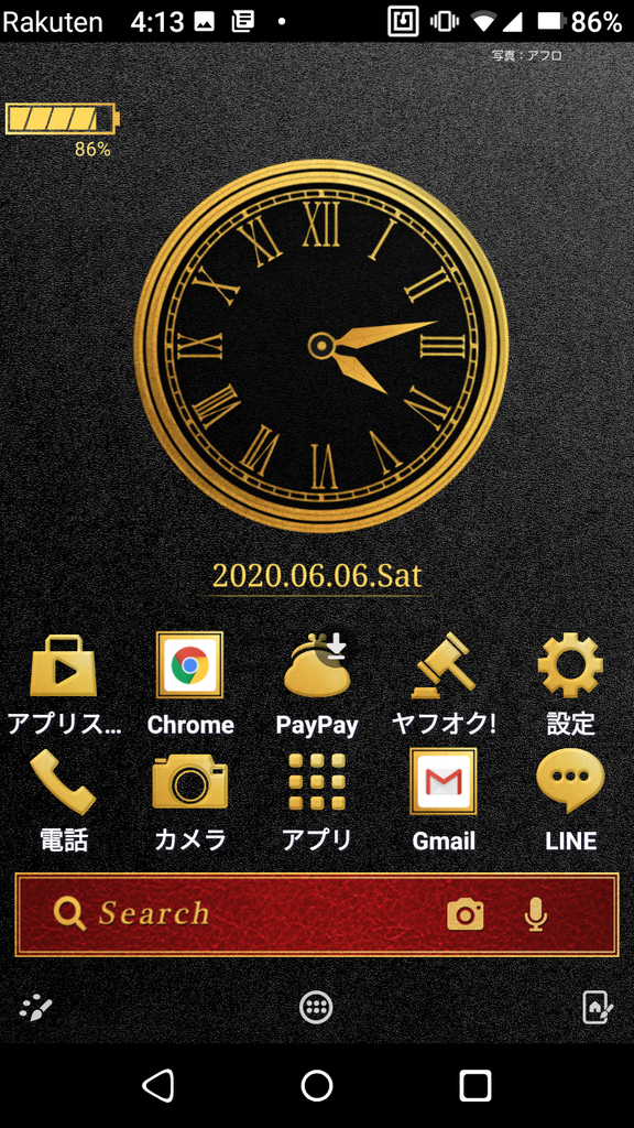 ホームアプリをヤフーきせかえに変更。壁紙を自由に変更できないRakuten Miniですが、このホームアプリならいけます。デフォのホームアプリのデザインは好きなんですが1画面に6つのアイコンしか置けないのでちょっと不便。