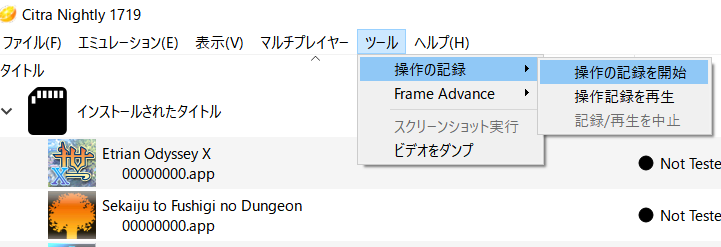 幾つか手持ちのソフトを試してみましたが、動くソフトに関してはフレームレートは安定しサウンドも問題なしでした。8割いけるということでしたからダメなソフトのほうが圧倒的に少ないのでしょう。全てのソフトが完璧に動く実機の偽トロですが、サウンドにはノイズが仕様上、どうしても入り込んでしまうことがあり、New3DS等でないとメモリ不足で処理落ちが起きることもあるのでこの辺はCitraに分があるといえるでしょう。