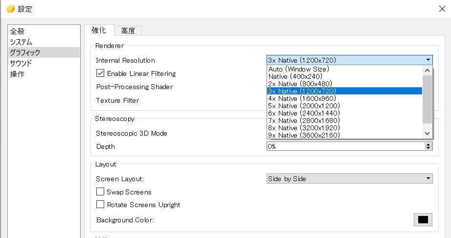 レンダリング解像度を変更することで3DSタイトルを4k画質で遊ぶことも可能になります。