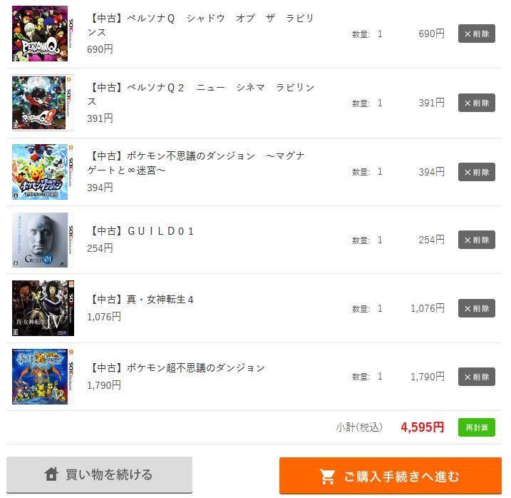 欲しかったソフトや、やり残したソフト、オフで遊ぶ用に確保しておきたいものなど買い込むことができました。