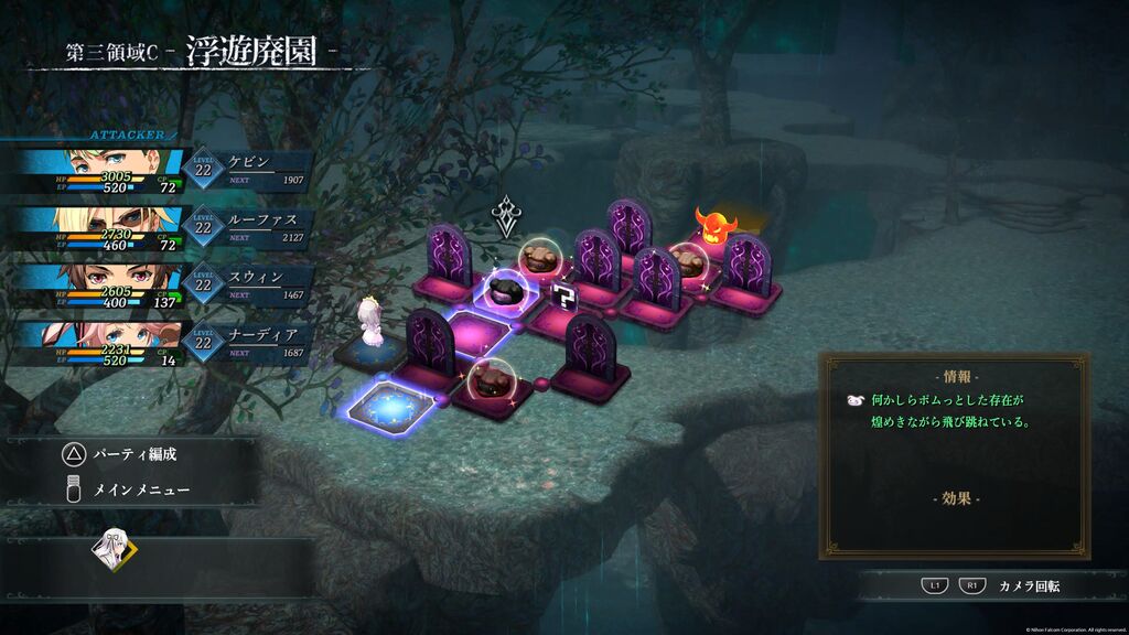メンバー多すぎるうえに、3作目なのに全員スロット空いてないから深刻なセピス不足感ありましたが庭城の自動生成ダンジョンを出入りしてポムで稼ぎを繰り返すのに気付ければわりとラクに済みましたね。ヒントなくこういうのに気付けるかは大事。