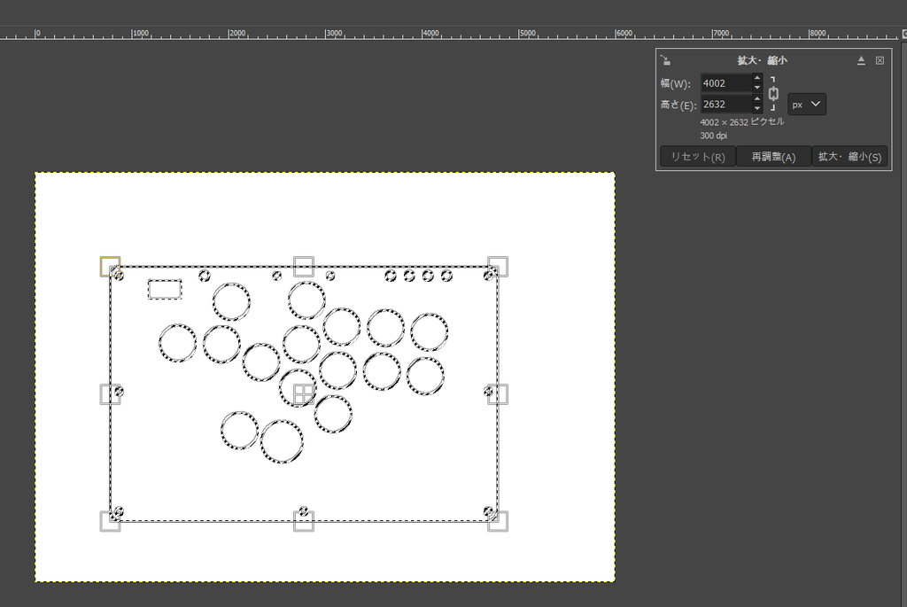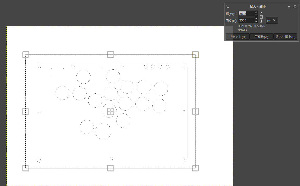 もしくはShiftキーを押しながら辺部分をクリックすると縮尺無視で拡大・縮小できるようになるのでコレで調節する。