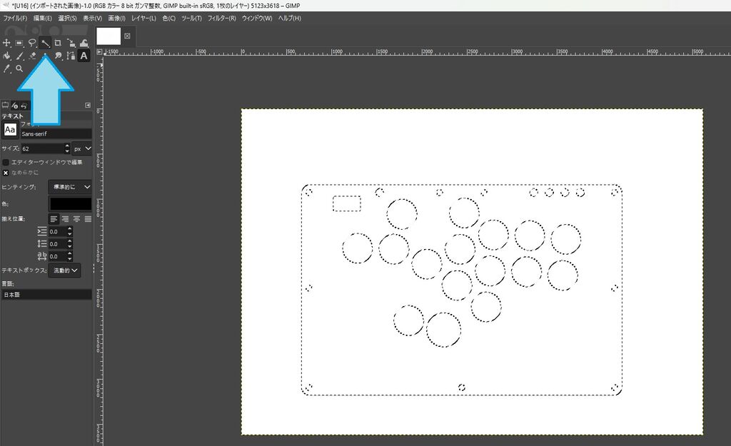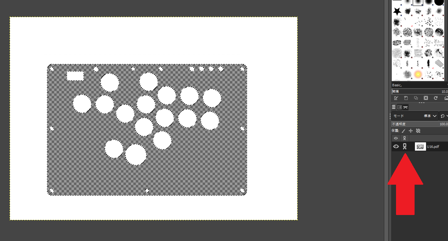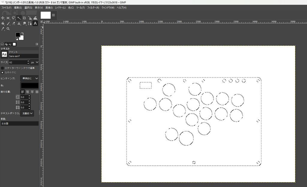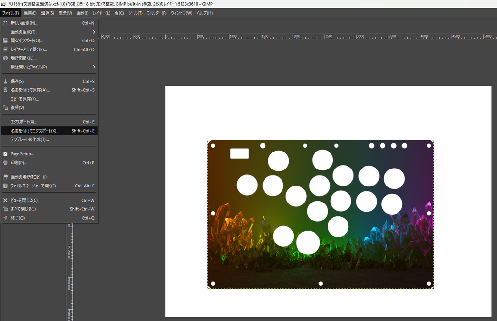 1. GIMPを開いたら上部メニューのファイル⇨レイヤーとして開くを選択してテンプレPDFを開く。