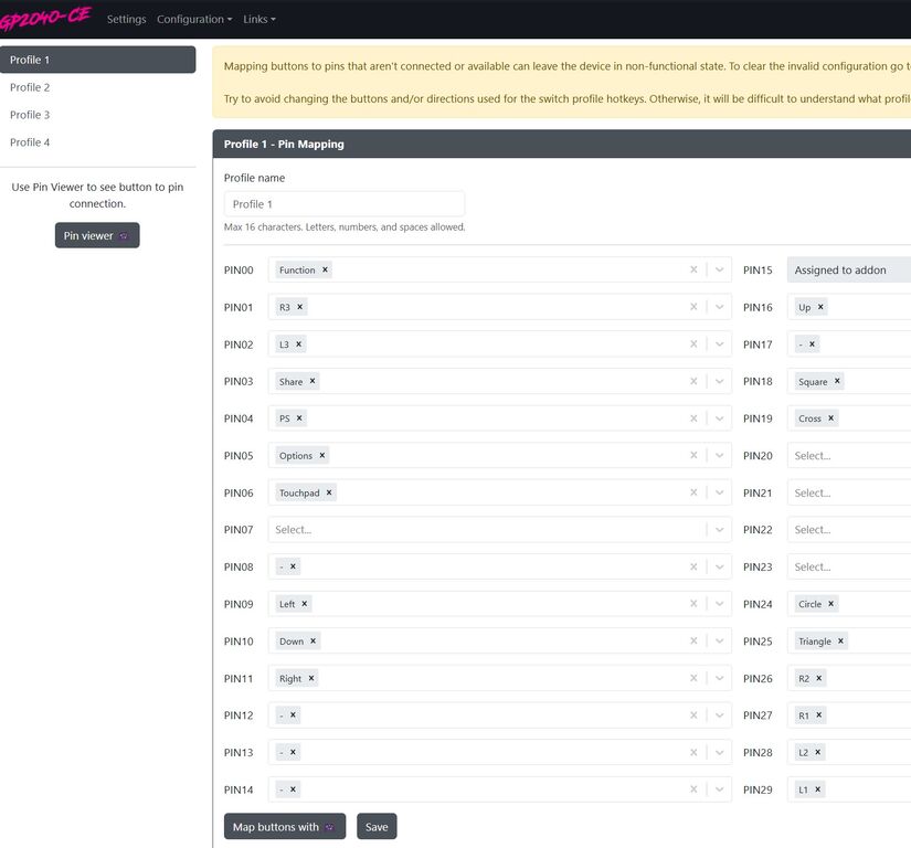 3.Confignation⇨Pin Mappingでボタンセッティング