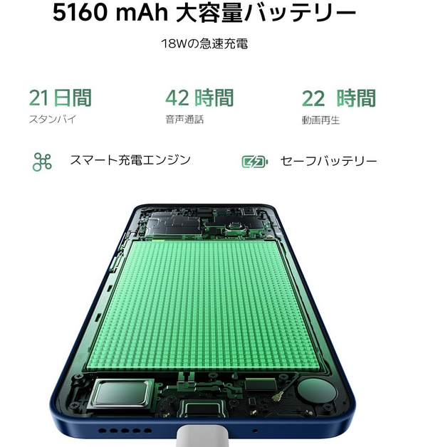 しかしながら、バッテリーは5,160mAhと大容量。そして液晶は6.88インチと大画面かつ、なぜか120Hzリフレッシュレートにも対応ということで動画や漫画アプリには最適です。