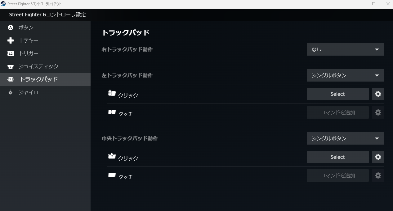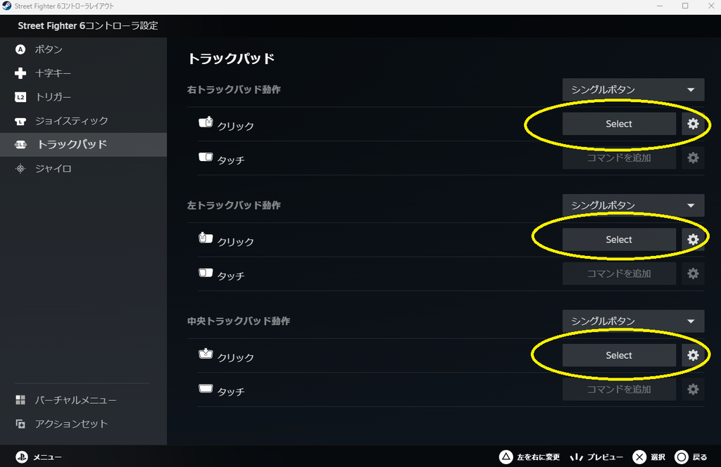 合わせて左トラックパッドと中央トラックパッドのクリック動作もSelectにする。