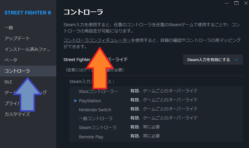 コントローラー⇨コントローラーコンフィギュレーターをクリック